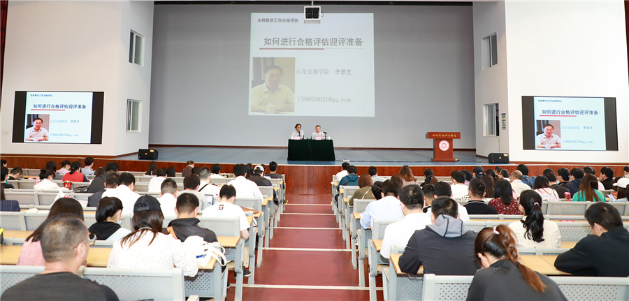 此次培训特邀请评估专家李景芝教授作了一场题为《如何进行合格评估迎评准备》的报告。李教授主要从评估综述、评估方案、专家组考察方式、学校迎评准备等几个方面为我校评估工作进行了指导。李教授的报告内容深入浅出,既有评估专家的指导理论,又有被评学校的实践经验,具有很强的指导意义。