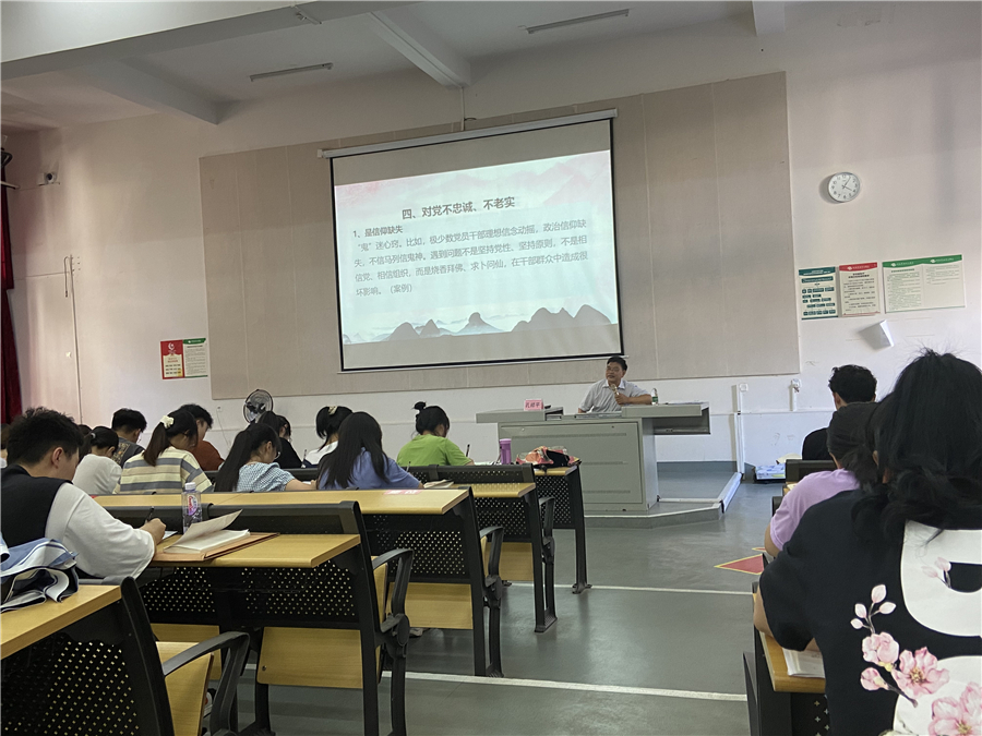 覃家惠教授以《习近平新时代中国特色社会主义思想、党的十九大精神和党的十九届五中全会精神》为题,紧扣党的十九大报告和党章内容,就习近平新时代中国特色社会主义思想进行概括提炼,对习近平新时代中国特色社会主义思想产生的时代背景、发展脉络、丰富内涵、学习贯彻等问题进行了比较系统的解读。胡坚教授以《中共党史教育》为题,围绕中国共产党百年奋斗的发展历程和中国共产党百年奋斗的经验启示两个方面,对中国共产党百年党史进行了系统阐释。王昌雄教授以《形势教育》为题,从国家的政治、经济、社会、国防、国际地位和人民生活出现的新变化,对我国当前的形势与政策等方面进行了深入浅出、全面系统又通俗易懂的讲解。白晓波主任以《党的组织生活》为题,就如何开展党组织生活,如何成为一名合格的共产党员做了全面深入的讲解。张光辉教授围绕《意识形态》教育、孔祥平老师针对《党规党纪》内容进行专题辅导。各位专家理论功底扎实,授课生动有趣,以身边人身边事阐道释义,解疑答惑,使参训学员大受吸引,听得津津有味。