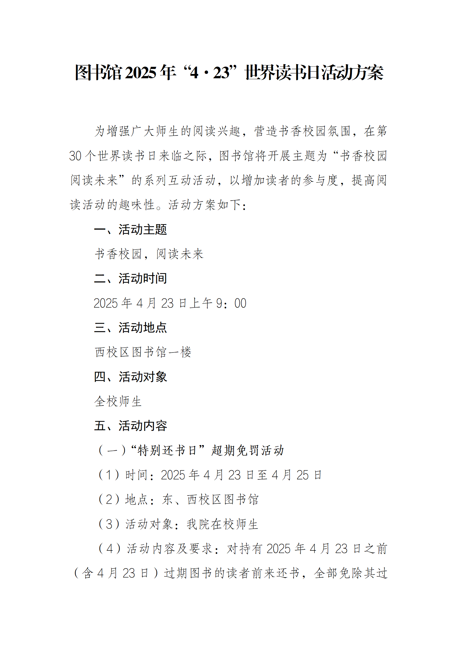 图书馆“特别还书日”图书逾期免罚 活动通知