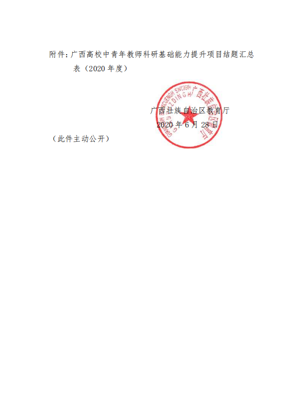 自治区教育厅关于同意2020年度广西高校中青年 教师科研基础能力提升项目结题工作的通知
