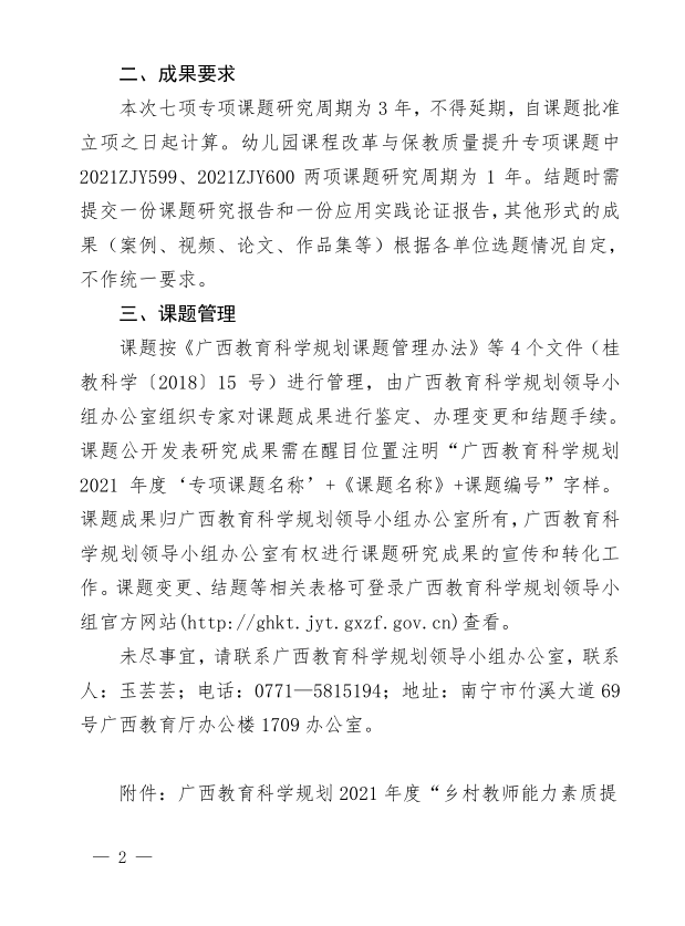 广西教育科学规划领导小组办公室关于公布广西教育科学规划2021年度“乡村教师能力素质提升”等七个专项课题立项名单的通知