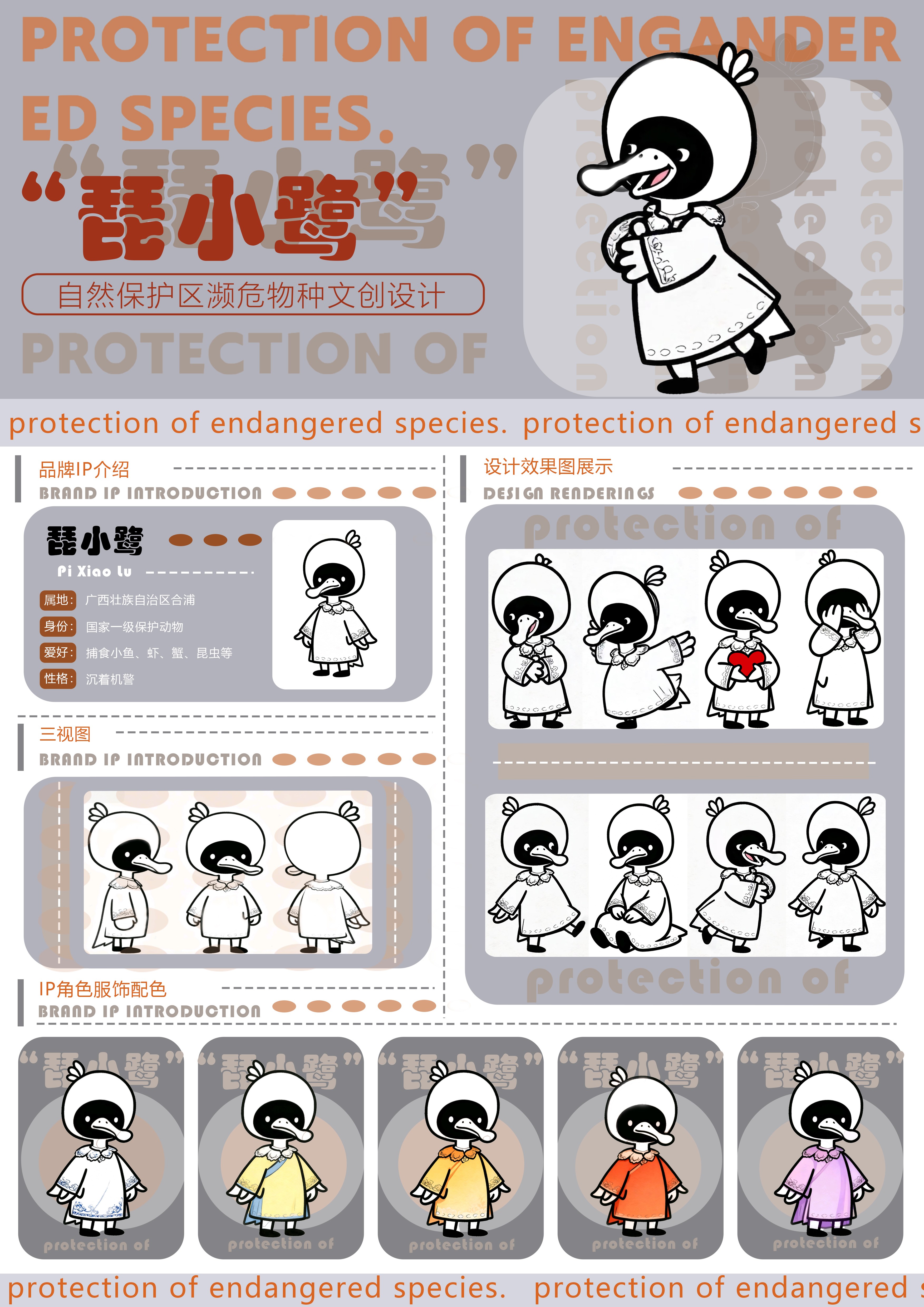 作品名称:《琵小鹭——自然保护区濒危物种文创设计》     作者: 孙艺宁