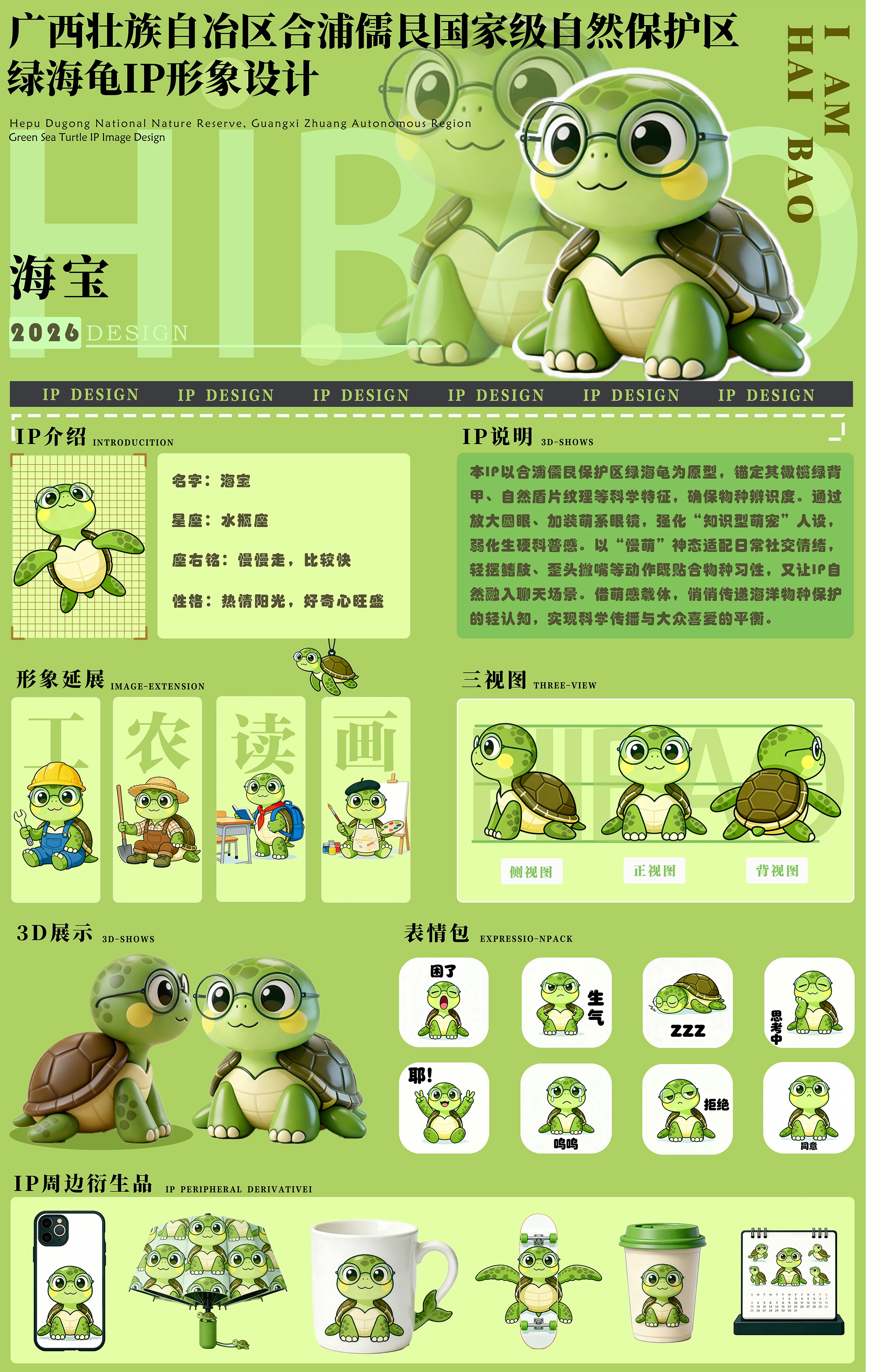 作品名称:《绿海龟IP形象设计-海宝》      作者:黄键全