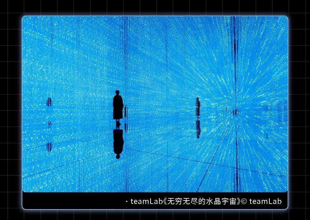 “teamLab无相艺术空间”是teamLab基于“数字技术将人类的表达与体验从物质中解放出来”这一理念打造出的超越了物质概念、超具沉浸感的巨大空间。人们可以在这里将身体沉浸到作品中,用身体去认知,去探索一种没有界线的连续性。同时也可以通过自己的行为动作影响作品,让自己成为作品的一部分。