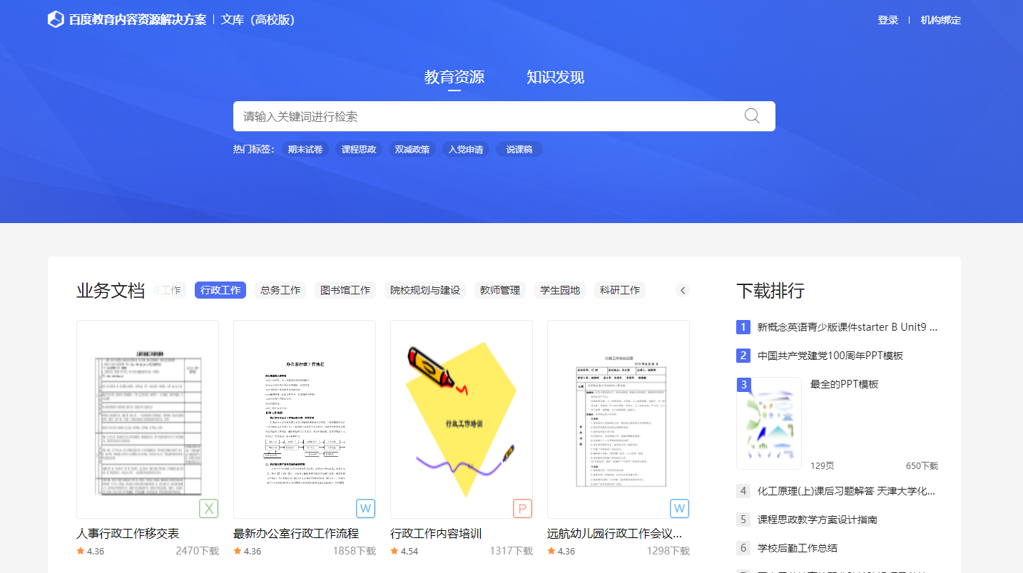 1、在校IP内,登录百度文库高校版(https://eduai.baidu.com )