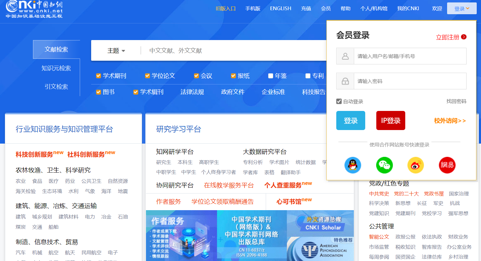 2、 点击右上角登录,输入账号密码进行访问(具体漫游账号密码,可咨询图书馆XXXX)