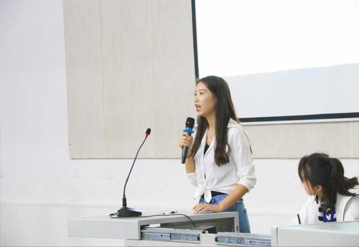 产品设计系16级5班的田青青为同学们做了“既来之则安之”的演讲,也提到了合理的利用时间比如扎克伯格时间管理,在大学四年中一定要学好英语和学会如何做笔记,去认识一个好老师会使你的校园生活更加丰富多彩。