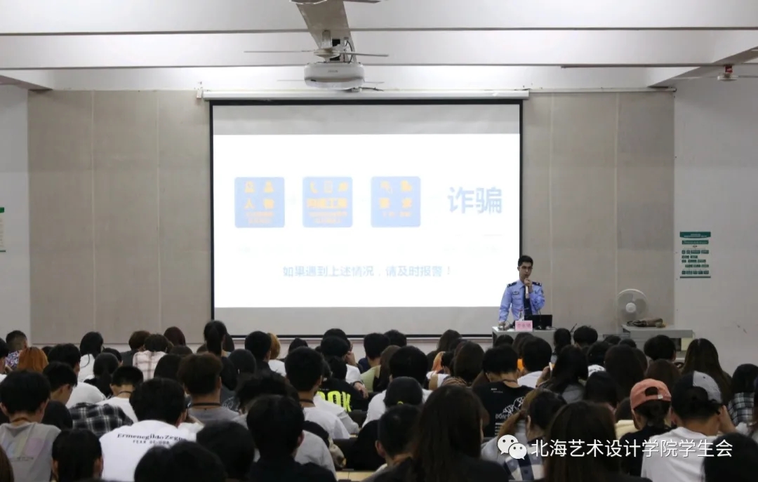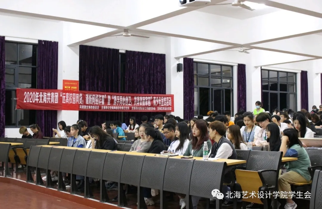 为了提高广大学生的网络防骗意识,增强对电信网络诈骗犯罪的识别和应对能力,共同营造卫生城市的良好氛围,2020年11月24日晚上19:30由共青团北海市委员会、北海市公安局网络安全保卫支队共同举办的“远离校园网贷,谨防网络诈骗”暨“携手同心创卫,共享美丽家园”青少年宣传活动在我校西校区伦理楼107正式开讲。
