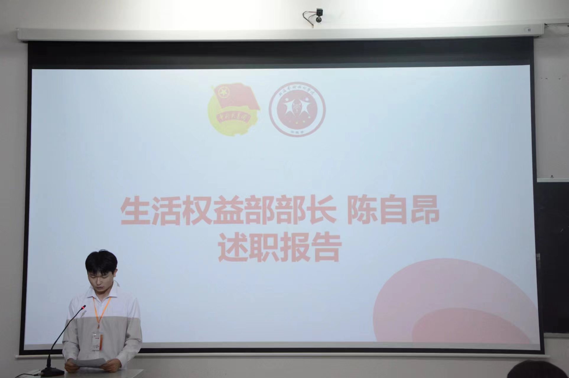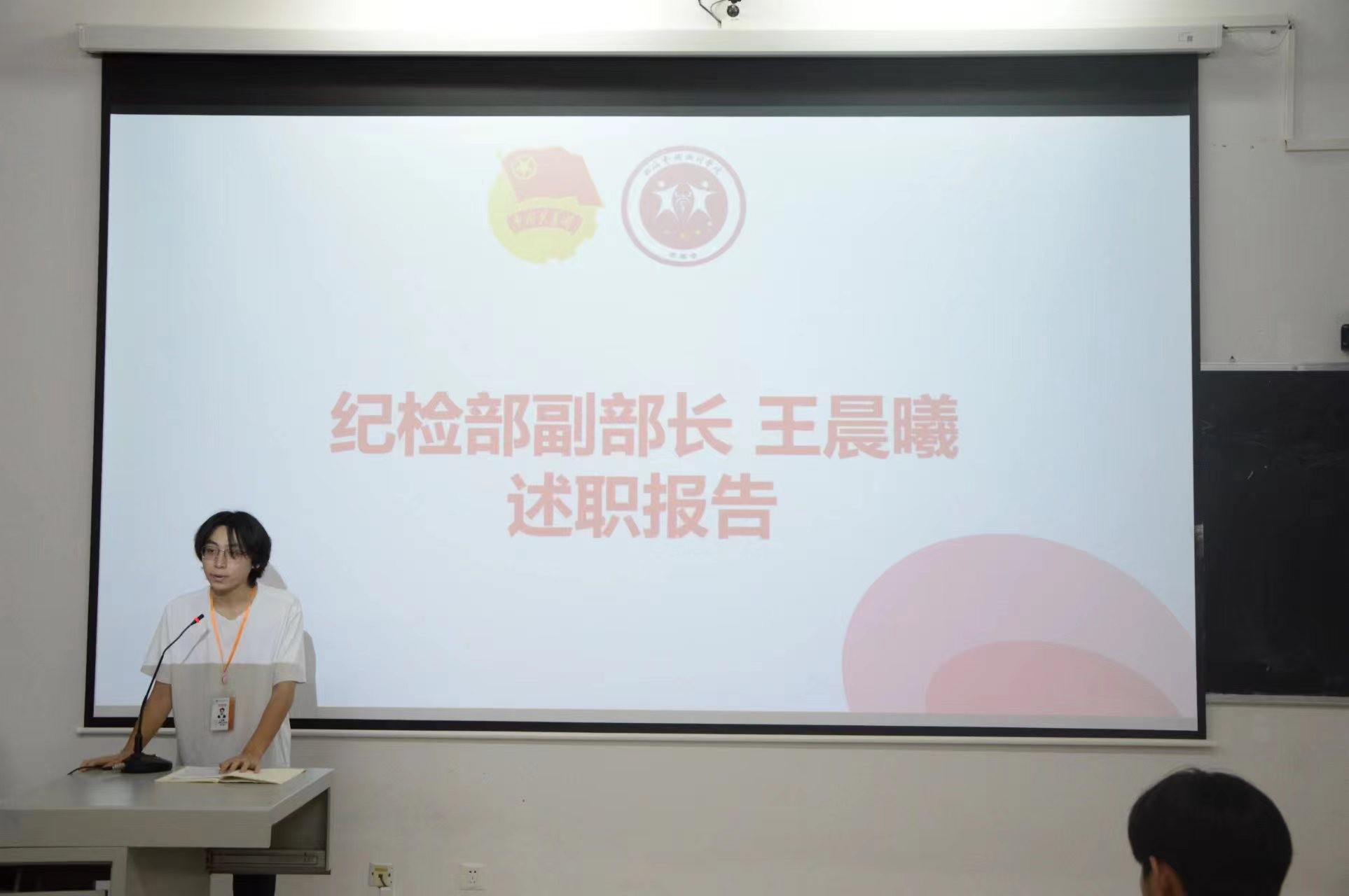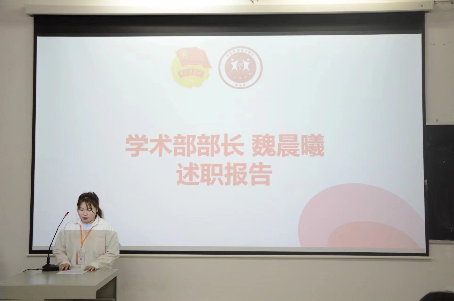 学生会六个部门的代表分别进行本学期的述职报告。他们先指出本部门的主要工作,接着从部门建设、工作总结、问题与不足以及下学期工作计划四个方面分别进行详细的汇报,根据本学期工作中存在的不足,他们表示,下学期应提高工作效率,加强时间管理,创新实践内容,提高应对突发事件的能力,同时加强各部门之间的沟通与交流,以此确保各项工作更好的开展。