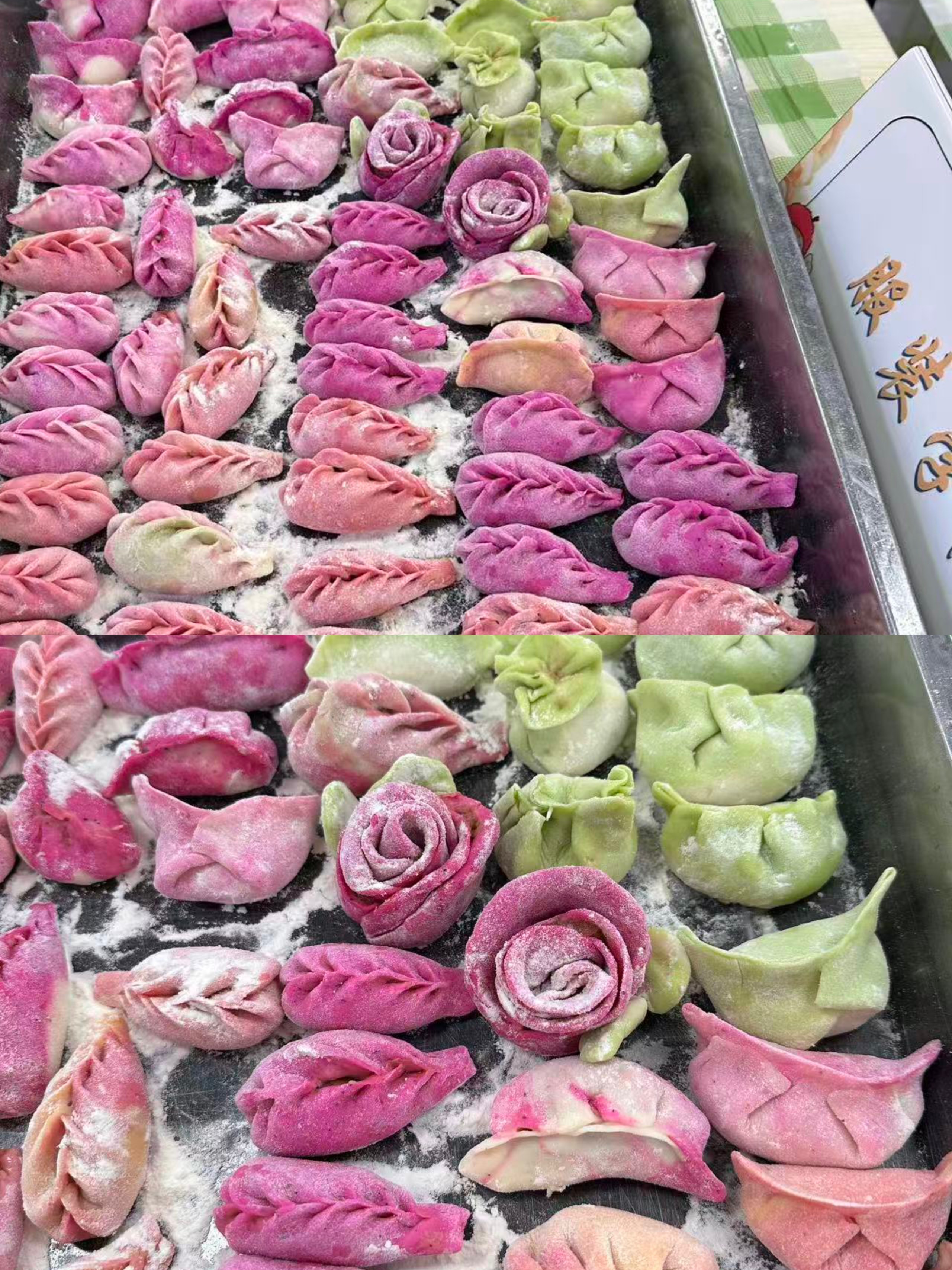 随后开展的包饺子环节将活动氛围推向高潮。全体参与人员以小组为单位协作配合,揉面、擀皮、包馅等各环节有序推进。手法娴熟的师生主动分享包饺子技巧,耐心指导初次尝试的同学,大家在交流互动中增进了解,在捏褶塑形的过程中不时传出欢声笑语。在一揉一擀、一包一捏的实践操作中,师生们深刻感悟冬至传统习俗所蕴含的温暖情谊与深厚民族文化内涵。