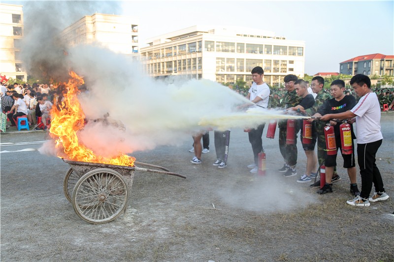 撤离结束后,渔港消防中队辅导员李延松介绍灭火器使用方法和注意事项,同学们对灭火器的使用了解程度也反应了我校灭火宣传的到位和安全措施的防范意识之强。随后校领导为同学们做演示,同学们也纷纷进行现场灭火器体验,大家热情高涨,踊跃参与。通过灭火器灭火体验,锻炼了大家如何使用灭火器灭火和扑灭初起火灾的能力,消防安全意识有了进一步的提高,切实掌握了灭火技能。