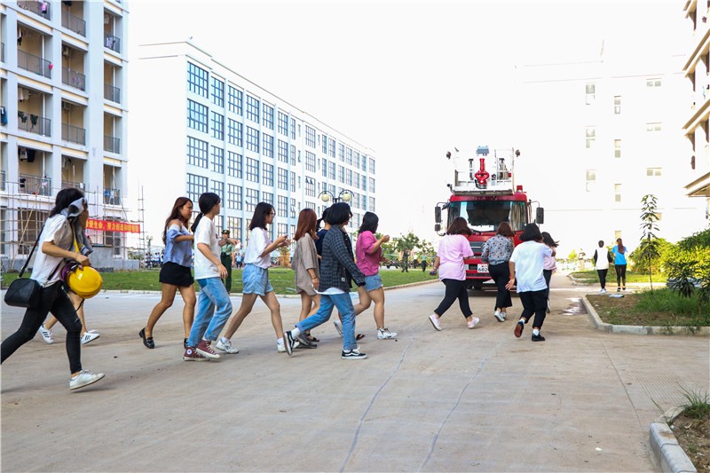 参加此次演练的单位和人员有北海市银海区消防大队电建渔港中队,学校各职能部门、各二级学院领导老师,以及全校学生。