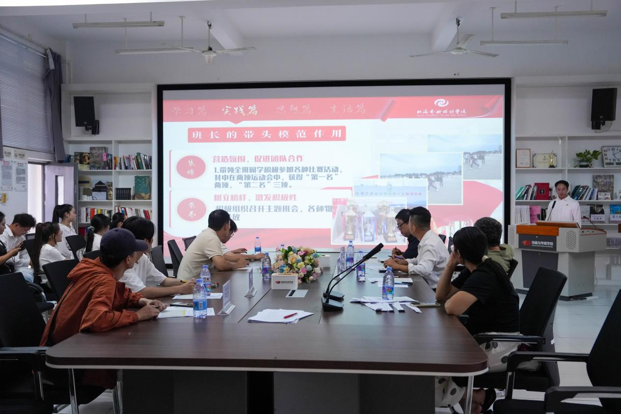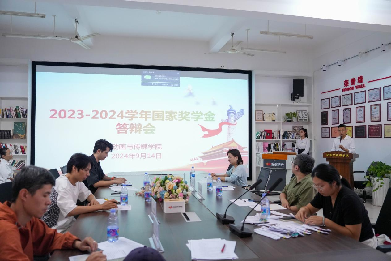 根据《关于做好2024年学生奖助学金评审发放工作的通知》(北艺学发〔2024〕18号)的指示,依照自治区教育厅《关于做好2024年高校本专科学生国家奖助学金评审发放工作的通知》(桂教资助〔2024〕19号)的要求,为切实落实2023—2024学年年度普通高校国家奖学金评审工作,2024年9月14日由我院学工办组织开展“动画与传媒学院2023-2024学年国家奖学金初答辩”会议。三十名选手到场参加,动画与传媒学院院长、副院长、副书记以及学工办主任出席本次答辩会。