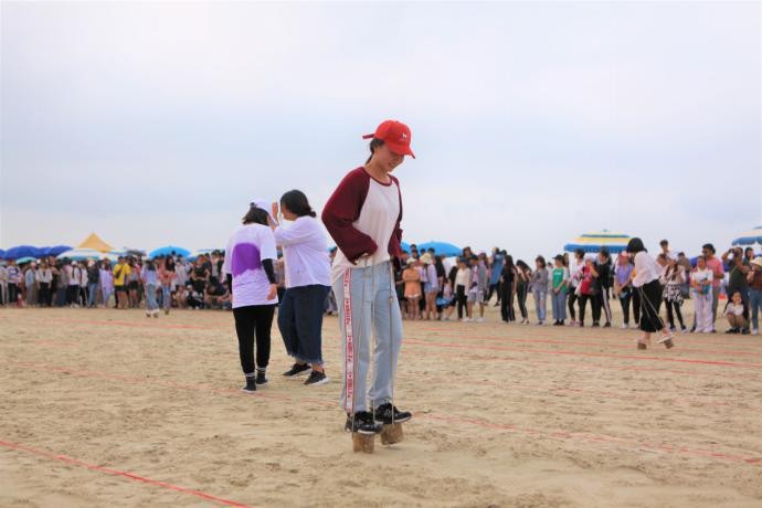 开幕式结束后,赛场上开始了激烈的角逐。本次运动会分为八人九足、水到渠成、高跷接力、拔河、沙滩排球和沙雕比赛六个项目,运动员们用坚持和毅力向我们展示了他们对运动热爱;拉拉队员用他们的声线为队员们喝彩;工作人员们更是忠于职守、用自己的努力为大家提供了保障。