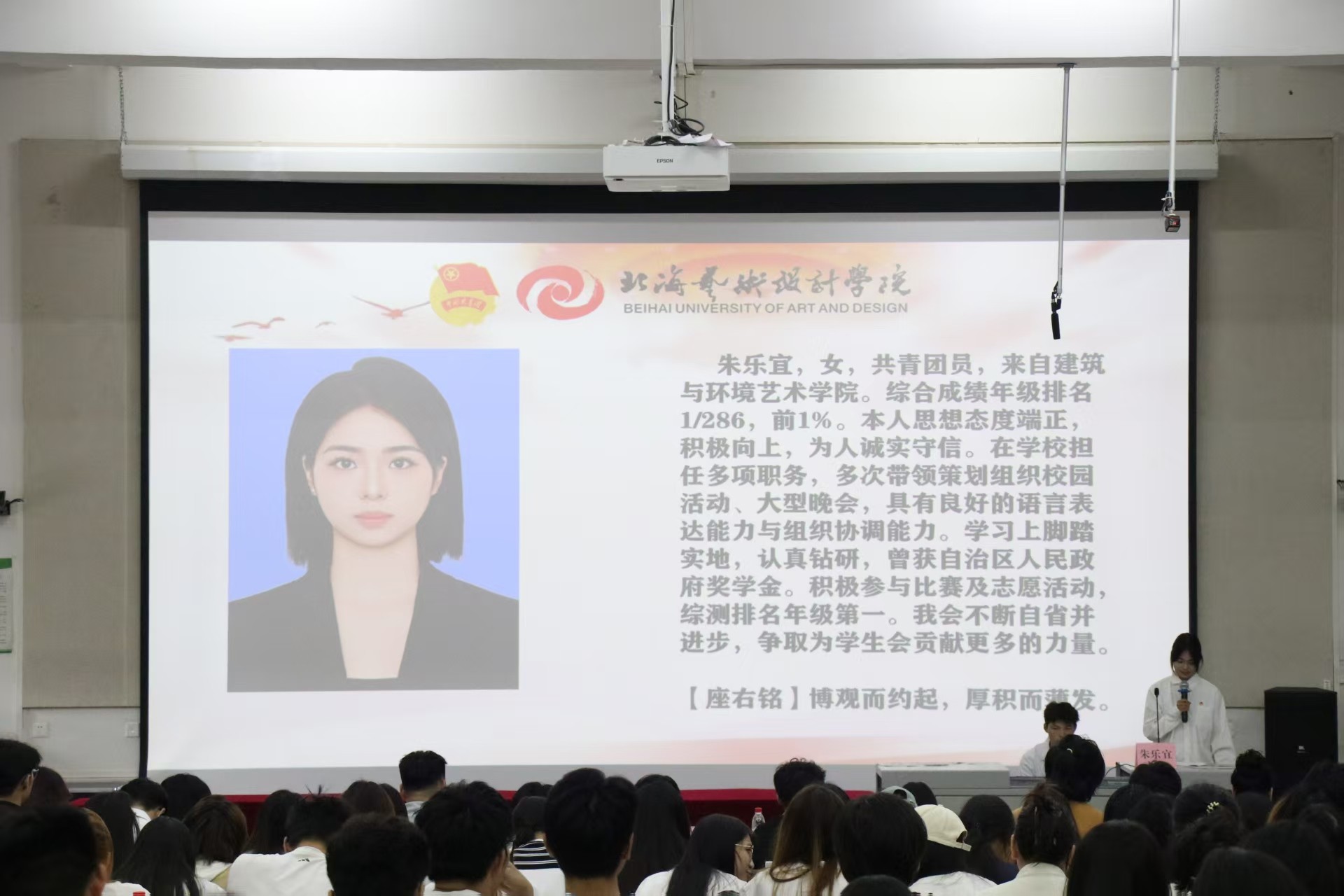 最后,大会秘书长杨美琪发表讲话。她回顾过去一年校学生会在思想引领、校园文化活动中取得的显著成效,强调学生会是连接学校与学生的桥梁,并向青年学子提出两点希望:一是坚定理想信念,牢记习近平总书记嘱托,以党的创新理论武装头脑;二是将个人理想融入国家发展大局,在新时代奋发有为。