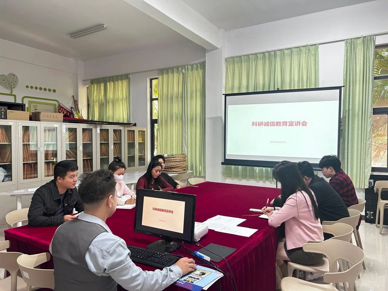 最后,参会人员就如何进一步推动科研诚信建设展开热烈讨论,并表示将积极参与活动,确保宣传月活动的圆满成功。此次宣讲会为后续活动的顺利展开奠定了良好的基础,期待全体师生共同努力,营造一个诚实守信的学术氛围。(欧阳含玥/摄)