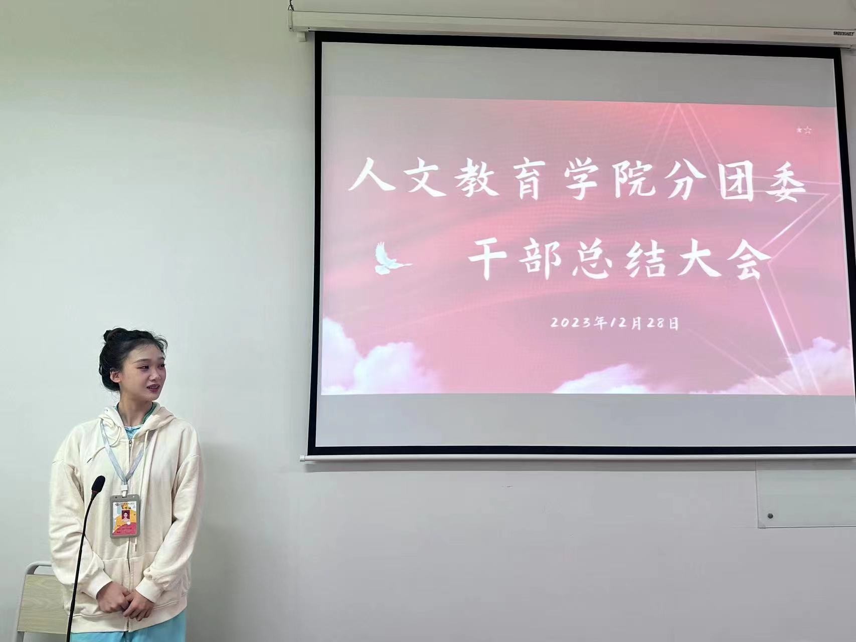 202313日, 2023-2024学年第一学期人文教育学院分团委总结大会在艺术楼311室召开。会议主要任务是总结本学期分团委工作和规划下学期分团委工作。分团委书记史晓菲老师所有学生干部出席会议,会议由分团委干部赵美琪主持。