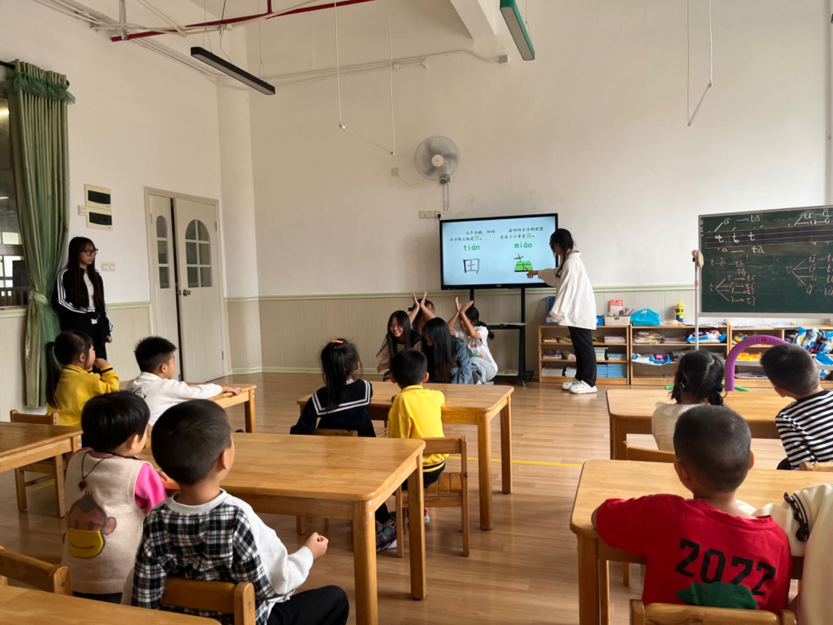 《创业启蒙》课程是汉语言文学专业学生的专业必修课程。2022级汉语言文学专业全体学生从专业实践与市场发展趋势出发,从国学传统文化中寻找题材并进行读本创作。全体学生共分16个小组,经指导老师指导,对启蒙读本几经修改,最终形成16个文学文本。为适应幼儿园学生的阅读相关与信息接收能力,汉语言文学学生还对自身文本进行适应性舞台改编,最终在幼儿园展示上呈现呈现话剧表演、故事朗诵、视频展示等多种展演形式。
