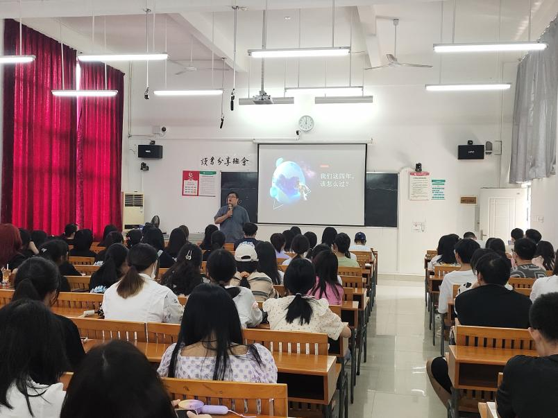 介绍会尾声,汉语言文学教研室副主任姜玮为新生做了题为《这四年,我们该怎么做?》的入学指导小讲座,姜老师提出五个“一”计划:探索并发现适合自己的那一条航路;学一门足以谋生的拿手知识和手艺;读一些真正有价值的好书;拥有一项持续终生的良好爱好;找到交心一生的同路好友。姜老师的入学指导小讲座趣味盎然,介绍会现场笑声不断。