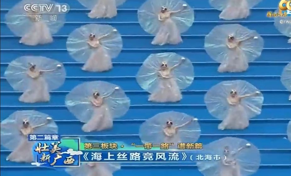 此次庆祝大会上,我校教育学院70名学生以北海南珠的形象,与北海市其它院校的参演团队们合作完成北海市代表节目——《海上丝路竞风流》,为自治区成立60周年大庆献礼。