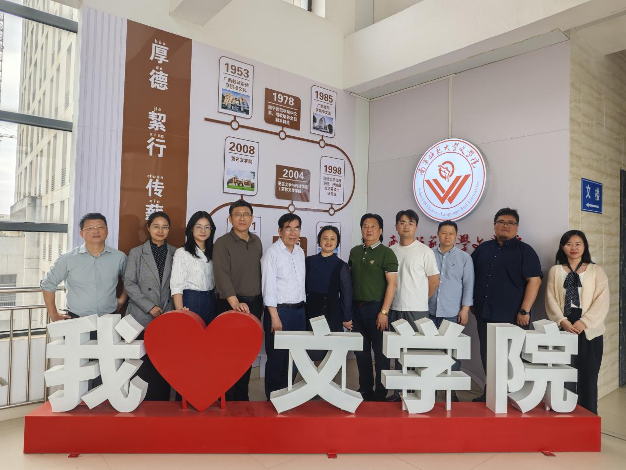 为进一步优化人才培养方案,提升人才培养质量,2025年4月16日下午,我校文学院院长黄宇鸿教授带领学院专业教师团队一行6人,赴南宁师范大学文学院开展人才培养方案调研交流活动。南宁师范大学文学院院长石勇、党委书记旷晓霞及相关专业负责人热情接待我院老师。
