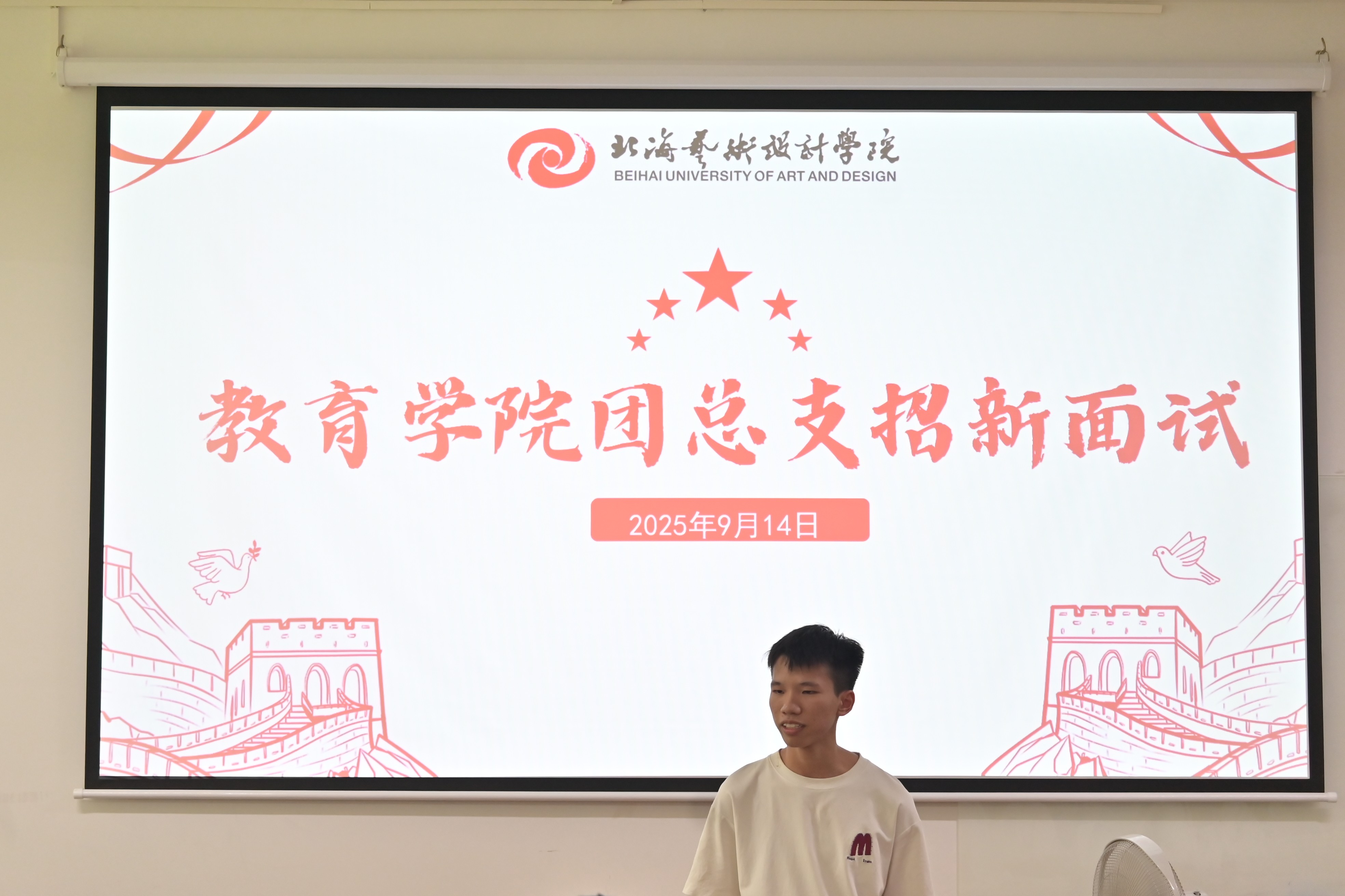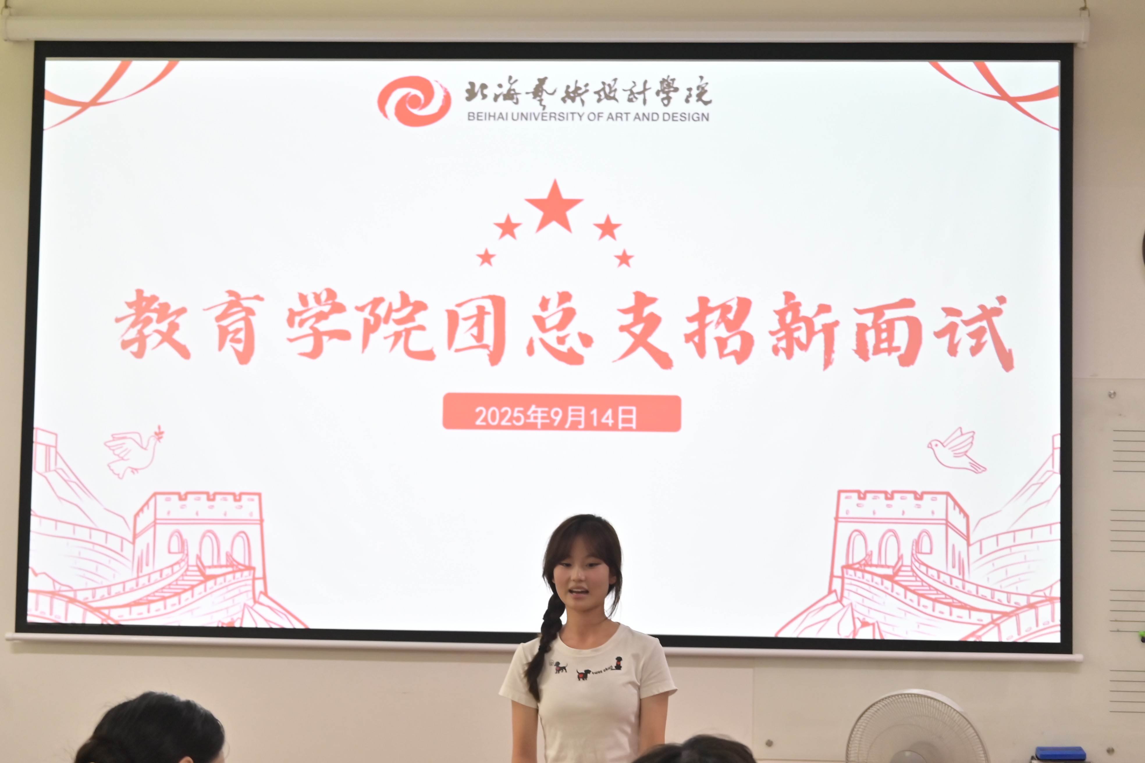 为进一步充实教育学院团总支队伍、提升组织战斗力,更好地服务广大同学,同时为同学们提供锻炼自我、提升综合素质的平台,2025年9月14日,教育学院团总支在西校区艺术楼311教室开展纳新面试。本次面试由教育学院团总支书记陈美霖、团总支各部门负责人担任评委,2025级新生以及2024级学生参与面试。