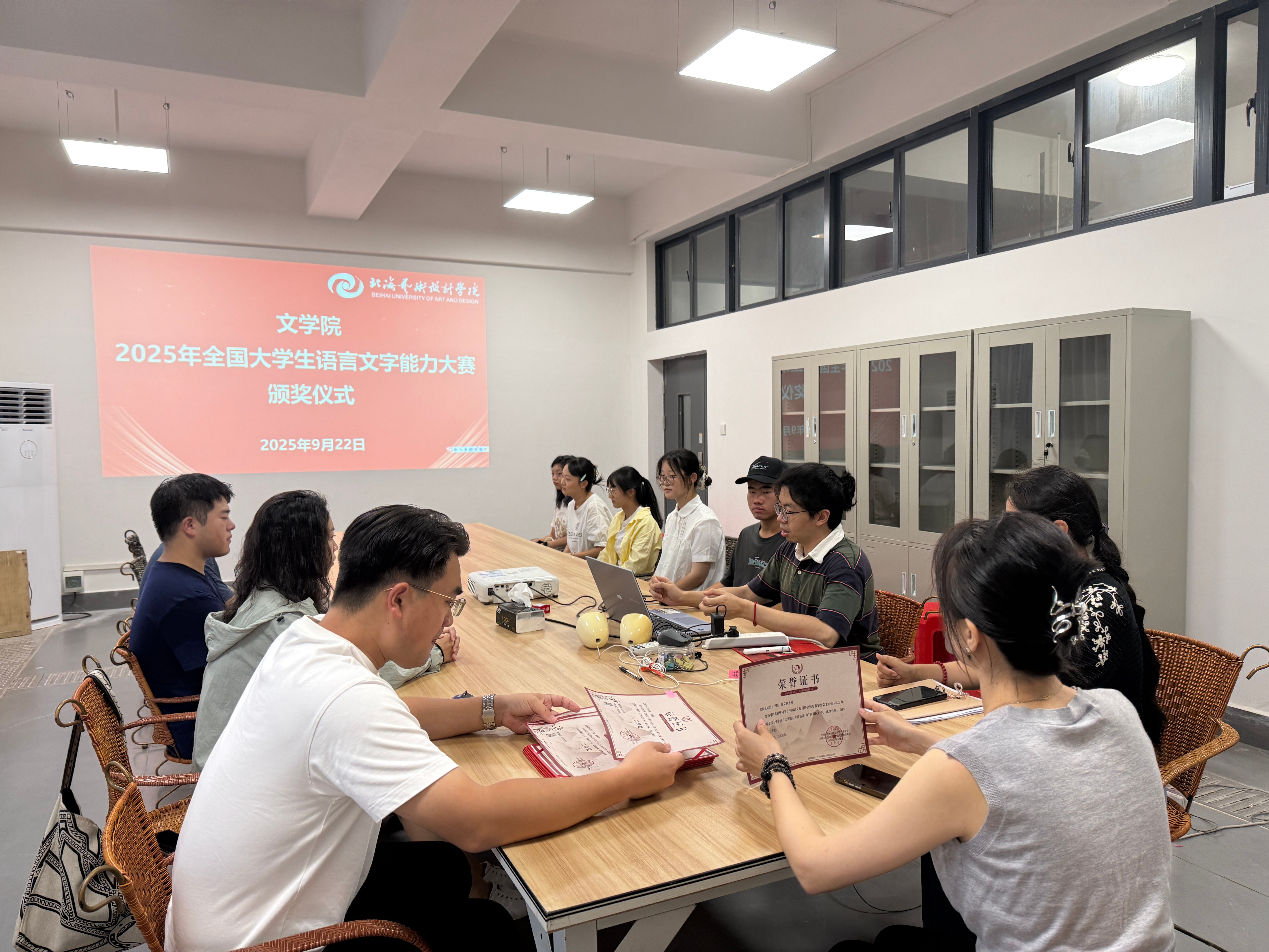 9月22日上午,文学院于南校区体育馆105会议室举行2025年全国大学生语言文字能力大赛颁奖仪式。本次仪式不仅是对获奖师生优秀成绩的表彰,更是对文学院圆满协办此项国家级赛事、展现学科实力与组织能力的全面复盘与总结。本次仪式由教务办主任郭建威主持,学院常务副院长梁镨文、副院长蔡森、裴景旺出席仪式,文学院获奖师生代表共同参加。