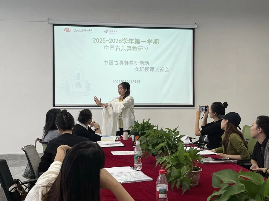 本次交流会紧扣“古典舞教学风格传承与教学能力进阶”核心,聚焦教学实践中的重点难点。活动中,全体教师围绕古典舞身韵教学、技术技巧训练等关键议题深入研讨,结合教学实例分享经验。