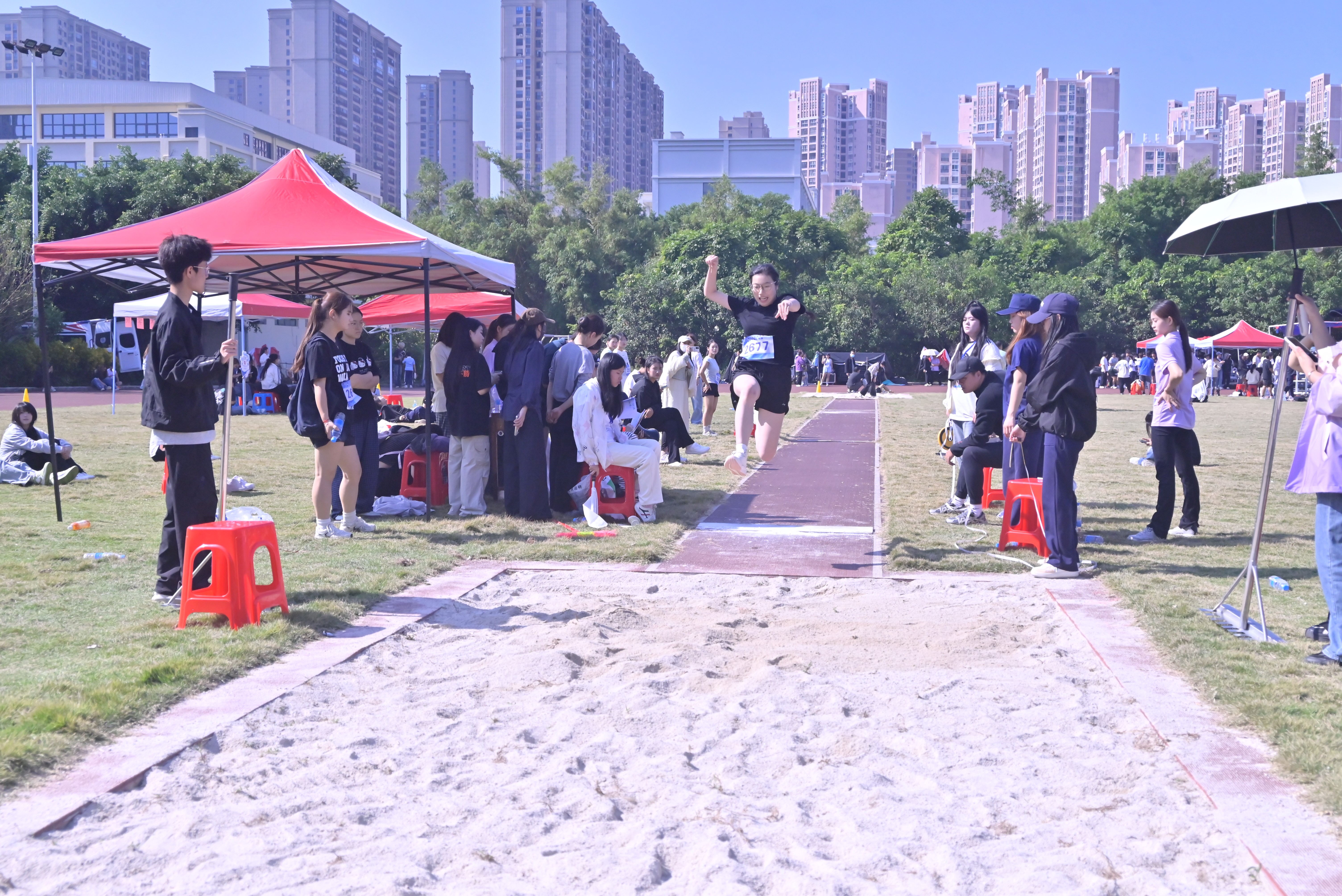 运动赛场上,运动健儿们挥洒汗水,奋力拼搏。在短跑、长跑、跳高等传统项目中,选手们不断突破自我,在本次运动会诸多项目中勇创佳绩。刘燕菲在女子组800米比赛中斩获第二名;女子组1500米第二名;高依慧实力突围,一举拿下女子组跳高第二名与女子组跳远第一名;黄秀荣、郑舒涵、阮红艳组成的队伍,在女子三人板鞋比赛中取得第一名的好成绩;刘燕菲、田镜、闫静文、高依慧出战女子组4×100米比赛,斩获第三名;王倩倩出战女子组400米比赛斩获第四名。