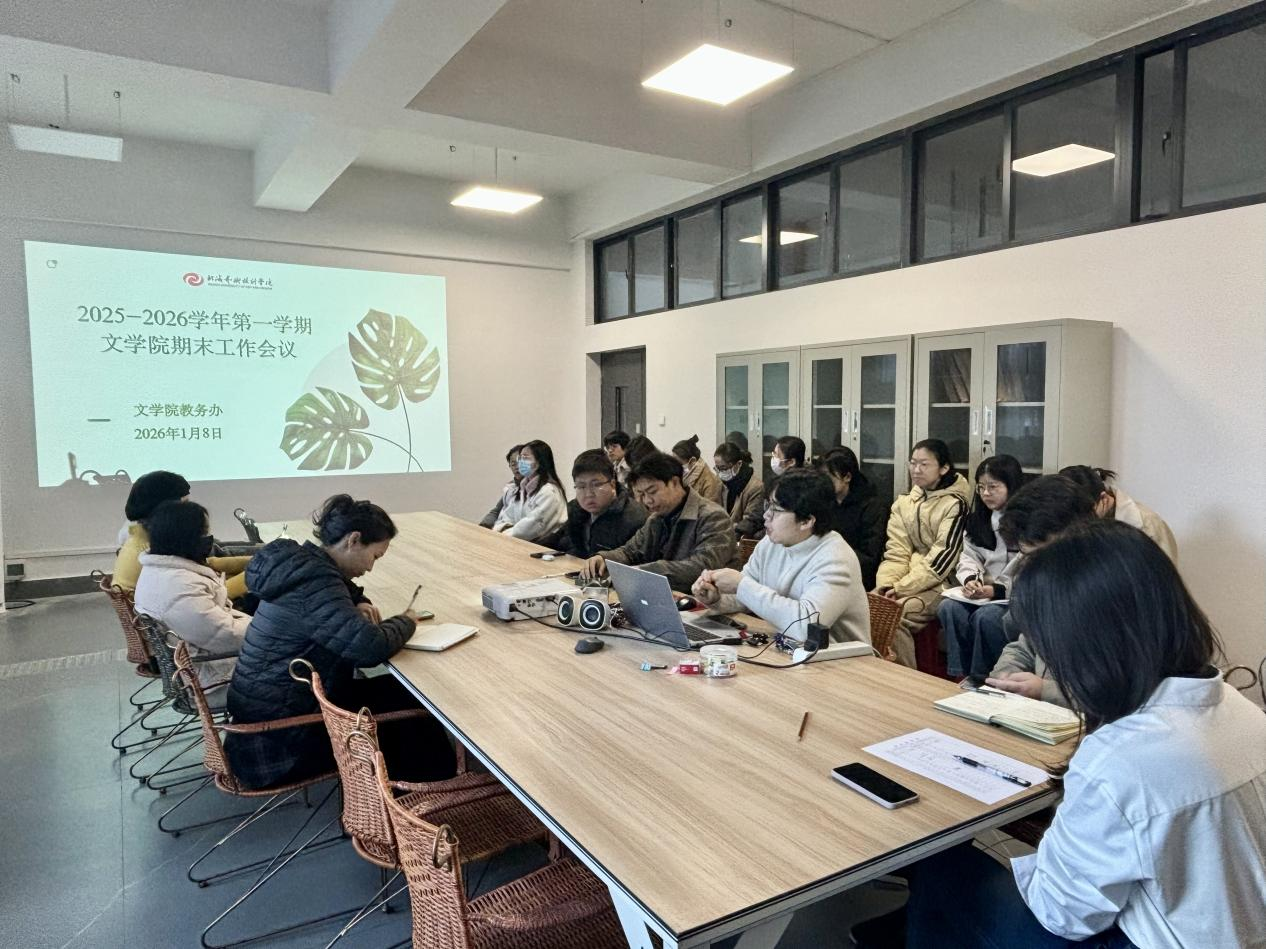 为切实做好本学期考务管理工作,保障期末考试公平、公正、有序开展,2026年1月8日,文学院组织召开期末考务工作专题会议,文学院党支部书记岳莹、副院长裴景旺及文学院全体教职工参会,教务办公室主任郭建威主持。