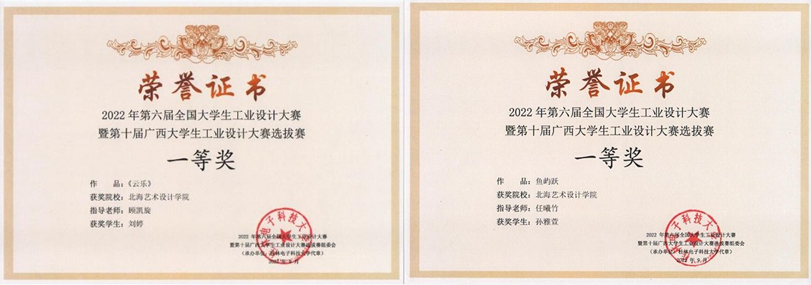 2022年(第六届)全国大学生工业设计大赛暨第十届广西大学生工业设计大赛选拔赛的主题为“跨界共融·设计同行”,广西赛区共计收到来自37所高校的5435件设计作品,赛事类别涉及八大类。其中我院学子在本次选拔赛(I类)评选中斩获一等奖4名,二等奖8名,三等奖15名。