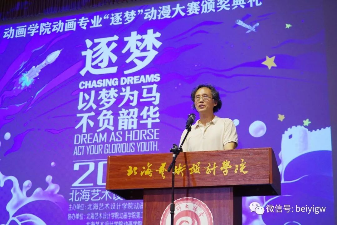 6月29日,北海艺术设计学院动画学院“逐梦”动漫大赛颁奖典礼在我校大礼堂举行。全国骨干漫画编辑、动漫教师、出版社绘本设计师广西科学技术出版社动漫期刊编辑、广西网络动漫大赛评委宫奇、广西阔迩登文化传媒有限公司总经理陈子雄、天象动漫总经理蒋玖林、行政部主任吴佳蔓、天象云豆直播公司总经理赵怀明、北海银河城市科技产业城总监梁张云、北海365总经理刘婷婷、北海市青年创业促进会办公室主任姜青云,我校校长卢新华、副校长陶立阳、美术学院副院长唐海以及动画专业2018级全体学生参加了本次颁奖典礼。