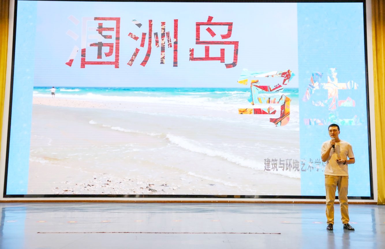大会第二项,张乐平副主任就本次实践活动的日程安排、准备的学习材料、作业情况、注意事项等给予了详细的介绍。随后向同学们分享了一些关于设计色彩写生的方法和技巧,他说:“不同的角度、不同的光线、不同的工具、不同的想法所呈现的画作都将构造成别样的涠洲岛。”同时他还强调,涠洲岛一直以来作为我院学生教学写生的重要实践基地,也是我校艺术教学上的一大重点内容。组织学生教学写生,旨在培养、锻炼学生的观察力和表现力,希望通过此次外出写生,同学们可以用自身的审美情趣去发现、捕捉自然界中蕴藏的美,同时提升自身对艺术对象的审美处理和艺术创作能力。