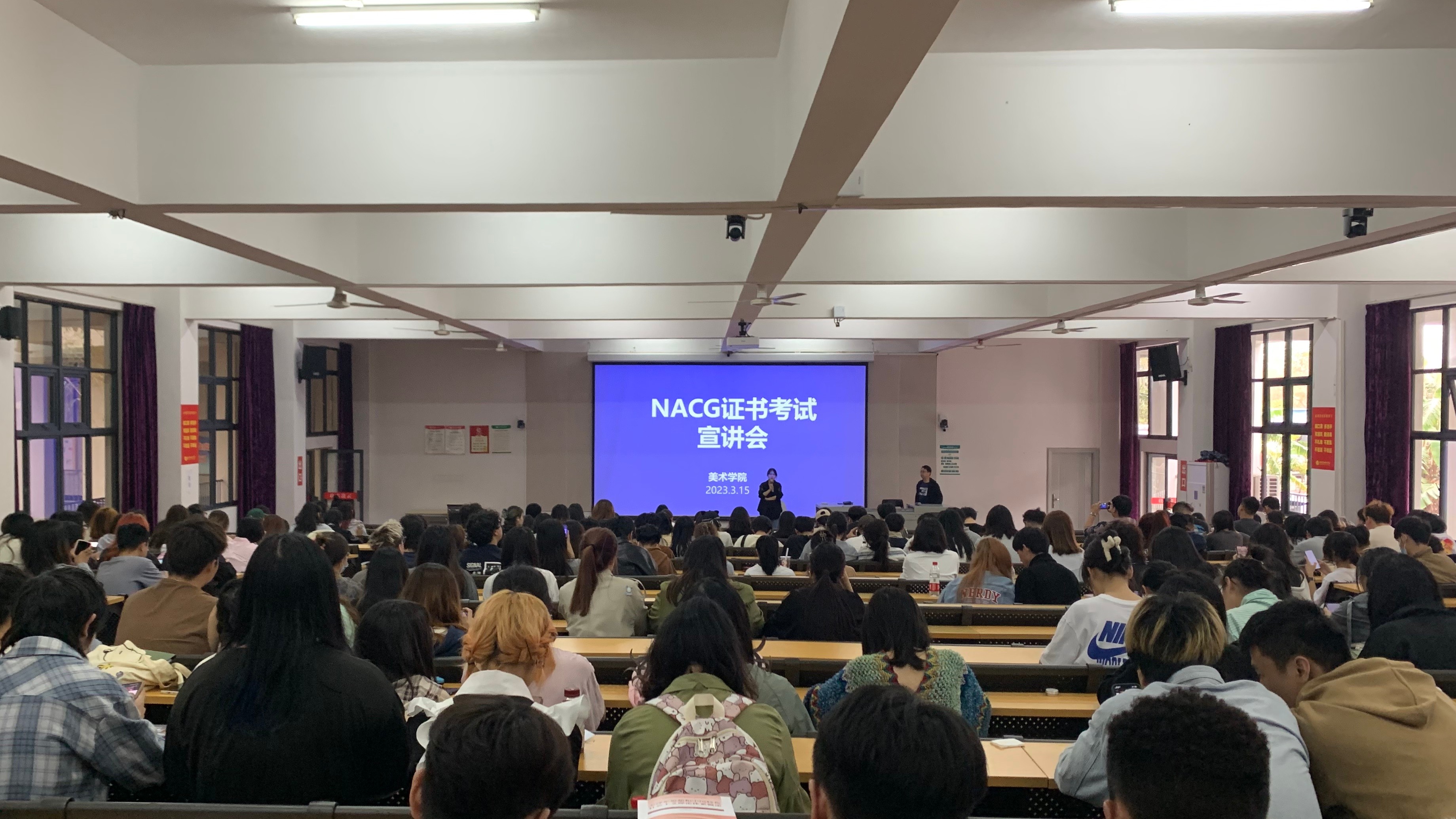 2023年3月15日下午,美术学院21级学生参与了关于NACG证书考试的宣讲会。会议由美术学院副院长肖玺主持,美术学专业学科带头人唐海主讲。
