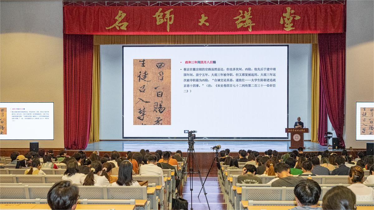 讲座伊始,冯海涛教授以《千里江山图》卷为题、以多个新颖角度引出三个问题的探讨:一、《千里江山图》卷为什么被称为青绿山水?二、《千里江山图》卷是希孟的真迹吗,是一件北宋作品吗?三、为何要对其中画式部分进行研究?随后,冯教授针对这三个问题,深入浅出为同学们进行阐释与剖析。
