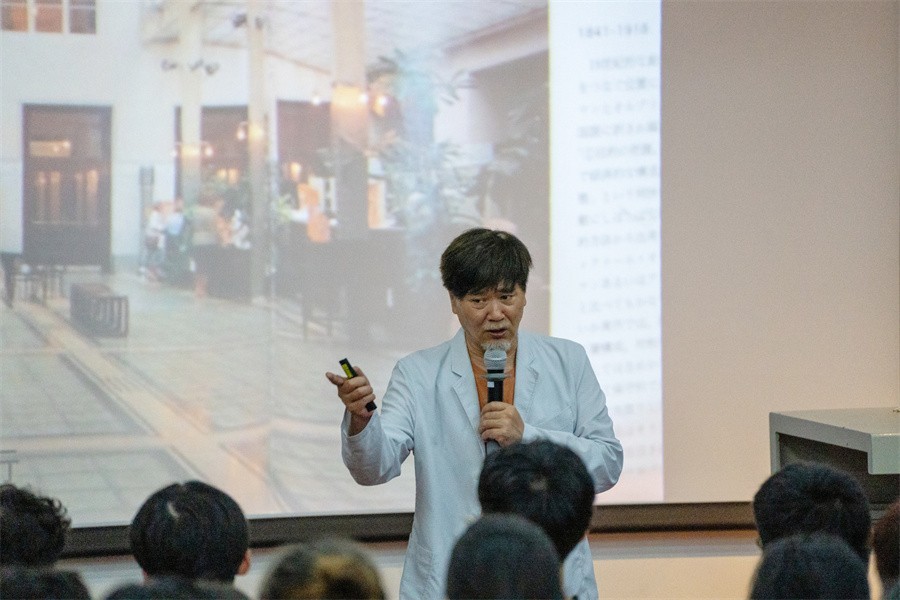 讲座伊始,陆志成教授简单介绍了世界现代建筑在年代、产业、哲学和美学的演变,以及他对建筑行业与环境设计专业的见解,从而延伸出世界现代建筑演变与环境设计专业的关联性。