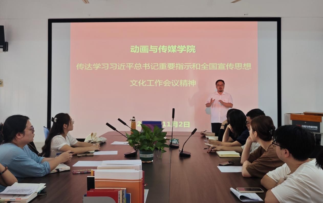 会上,张帆书记传达学习习近平总书记重要指示和全国宣传思想文化工作会议精神,重点解读了“三个事关”和“七个着力”重要要求。张帆指出,各党支部宣传委员、各部门通讯员作为高校教师,作为新闻宣传者,作为文化教育传播者,要深刻认识宣传思想文化工作面临的新形势新任务,坚持不懈用习近平新时代中国特色社会主义思想凝心铸魂,以习近平文化思想为指引,切实担负新的文化使命,着力加强党对宣传思想文化工作的领导;着力建设具有强大凝聚力和引领力的社会主义意识形态着力培育和践行社会主义核心价值观;着力提升新闻舆论传播力引导力影响力公信力;着力赓续中华文脉、推动中华优秀传统文化创造性转化和创新性发展;着力推动文化事业和文化产业繁荣发展;着力加强国际传播能力建设、促进文明交流互鉴。讲好中国故事,校园故事,促进校园文化的建设与传播。张帆同时强调,新闻宣传工作是高校宣传思想工作的重要组成部分,是加强学院意识形态阵地建设的重要途径,也是展示学院教育改革发展成就的重要窗口,做好新闻宣传工作至关重要。学院各部门要充分认识宣传工作的重要性和必要性,在宣传工作中一是把好政治关,提高政治站位,承担起“举旗帜、聚民心、育新人、兴文化、展形象”的使命;二是重视时效性,积极主动挖掘新闻价值,勤于思索、精于谋划,将各项工作与宣传工作有机融合;三是要严格执行“三审三校”制度,严把信息发布的政治关、文字关、质量关、意识形态关。