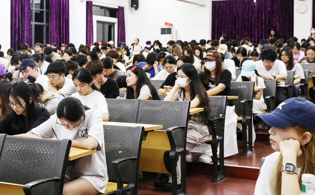 此次讲座不仅拓宽了学生的视野,也增强了他们对AI时代的艺术与设计教育的了解。最后,部分学生与杨东江教授进行合照,讲座在现场师生热烈的掌声中圆满结束!(胡婷烨/摄)