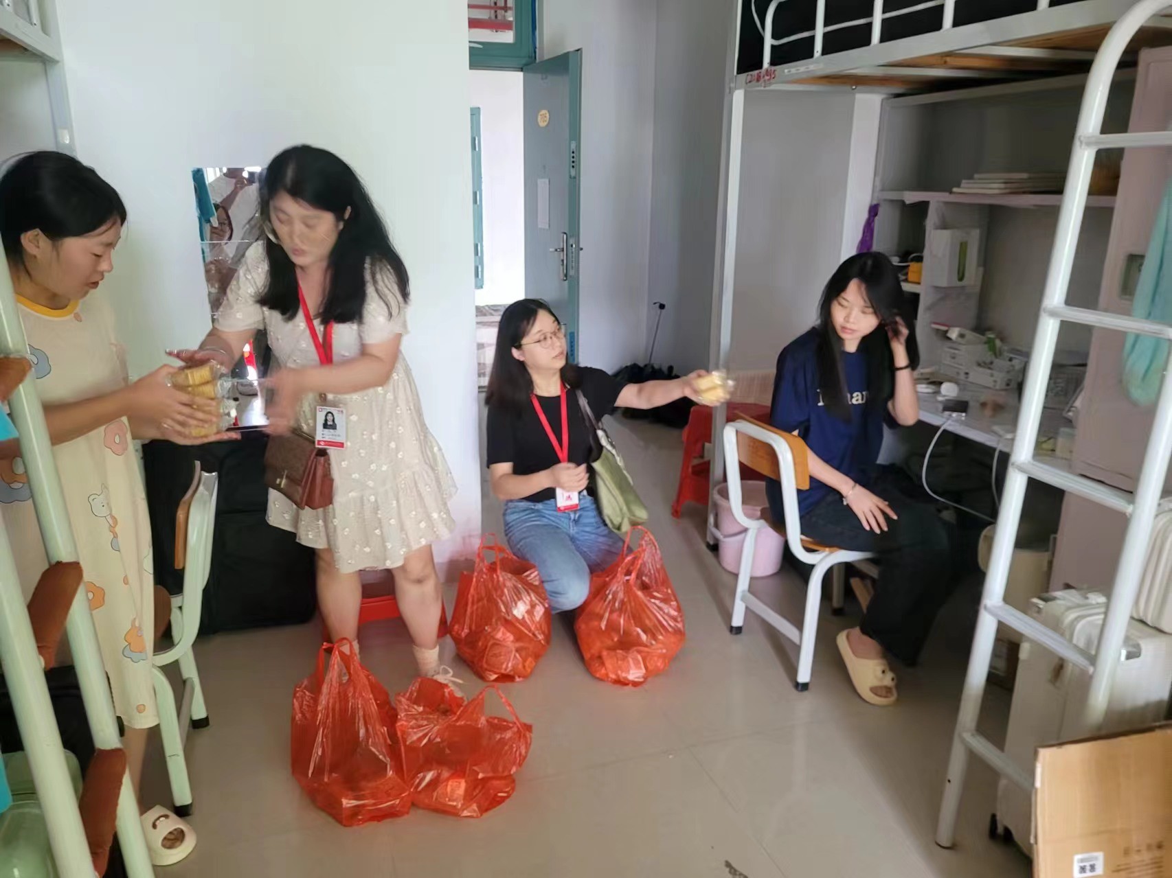 为贯彻落实社会主义核心价值观,继承和发扬中国传统文化,提高学生们对传统文化的认同感。9月17日,学院执行院长龚为、副院长金凯婧、殷声副院长、党总支副书记鲁明阳、学工办主任林昌华、副主任杨凯、分团委副书记许荣军及12位新生班级辅导员,深入学生宿舍,为每一位新同学送上了来自北海艺术设计学院的真挚祝福与特制的中秋月饼。这一举动不仅传递了节日的喜悦,更展现了学院对学生们无微不至的关怀与爱护。