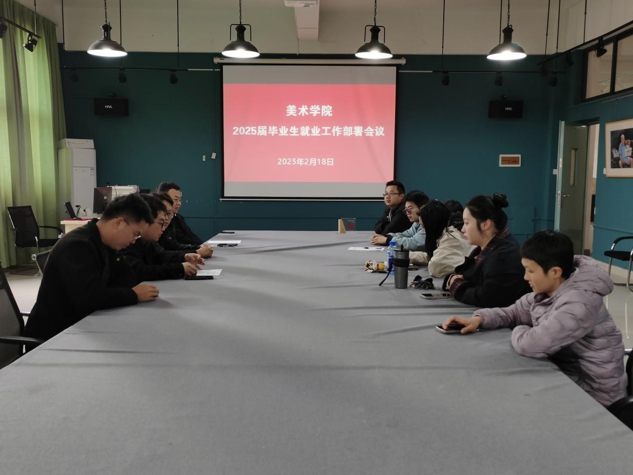 2月18日,美术学院就业会议于艺术楼313召开。本次会议由美术学院学工办副主任杨凯主持,议题关于2025届毕业生就业工作部署,执行院长龚为、书记韩玮、副书记鲁明阳、副院长殷声、学工办主任林昌华以及各21级班主任参加会议。