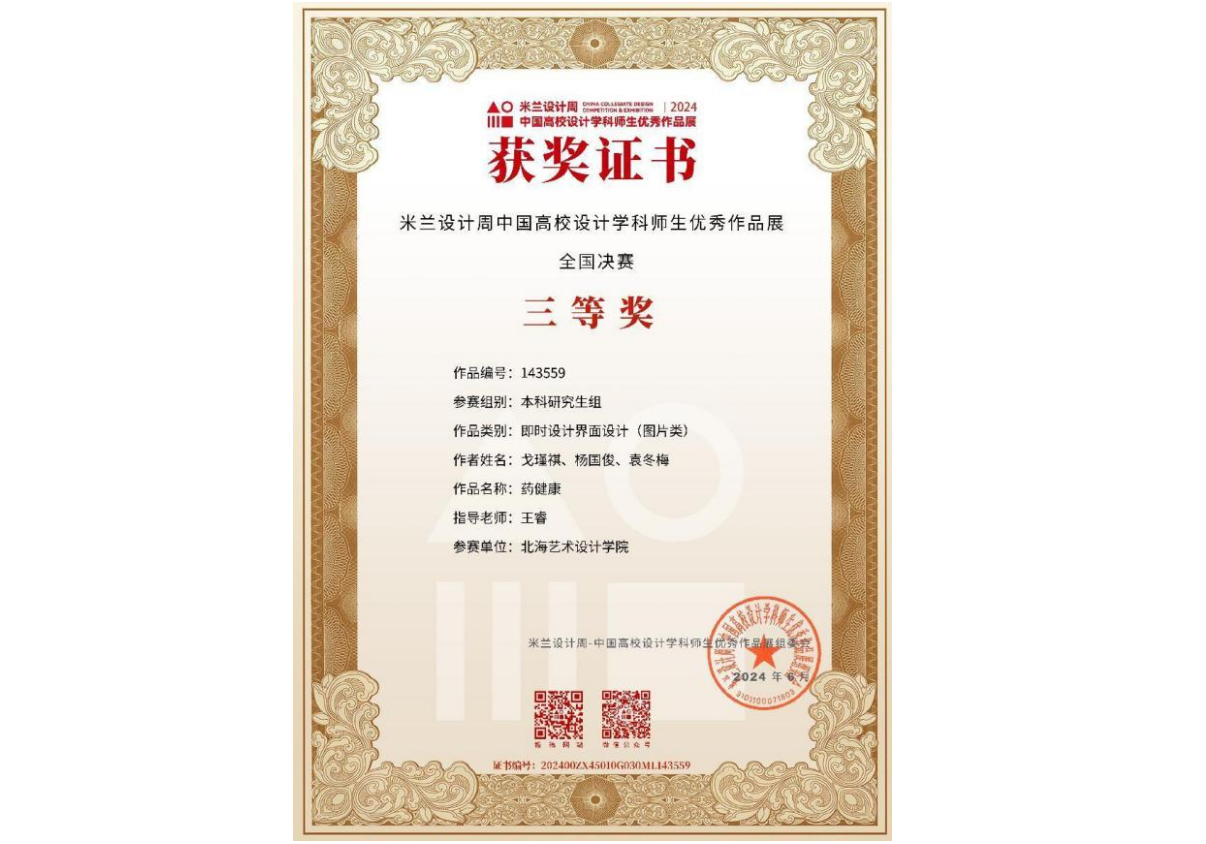 在第18届好创意暨全国数字艺术设计大赛中,动画与传媒学院作品《爱国歌》斩获国赛一等奖,作品《中式赛博朋克——在逃柯基》《生肖纹》《痕迹》《手艺在赣》荣获国赛二等奖,《药叮咚》《呐喊》《璀璨即墨》等11件作品荣获广西壮族自治区省赛奖项。学院张丽君、陈蔓延、谭湘虎、许一桐、鲁天航、王弘武、徐向坤7名老师获评为优秀指导教师。
