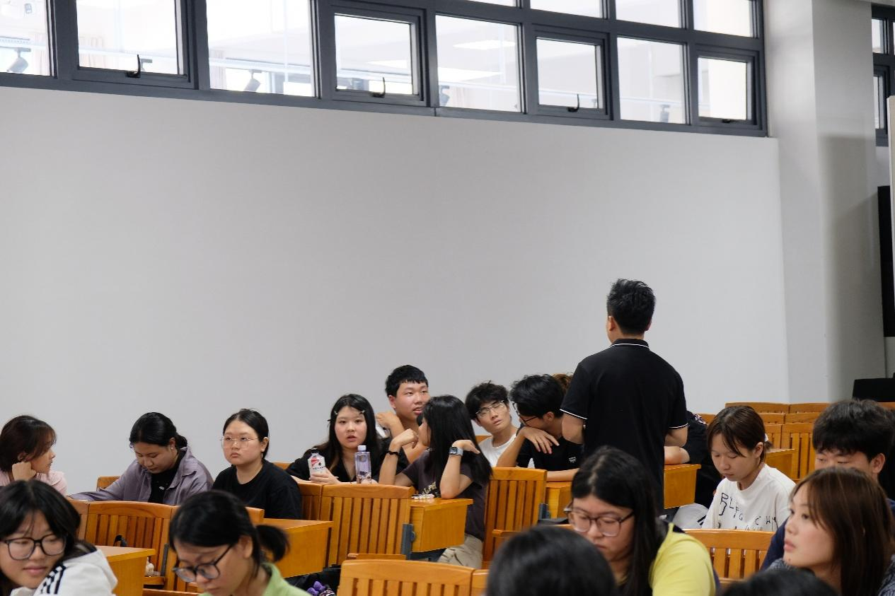 在互动环节中,学生围绕课程设置、难度及跨专业选修等问题踊跃提问,刘勇生主任逐一予以解答。