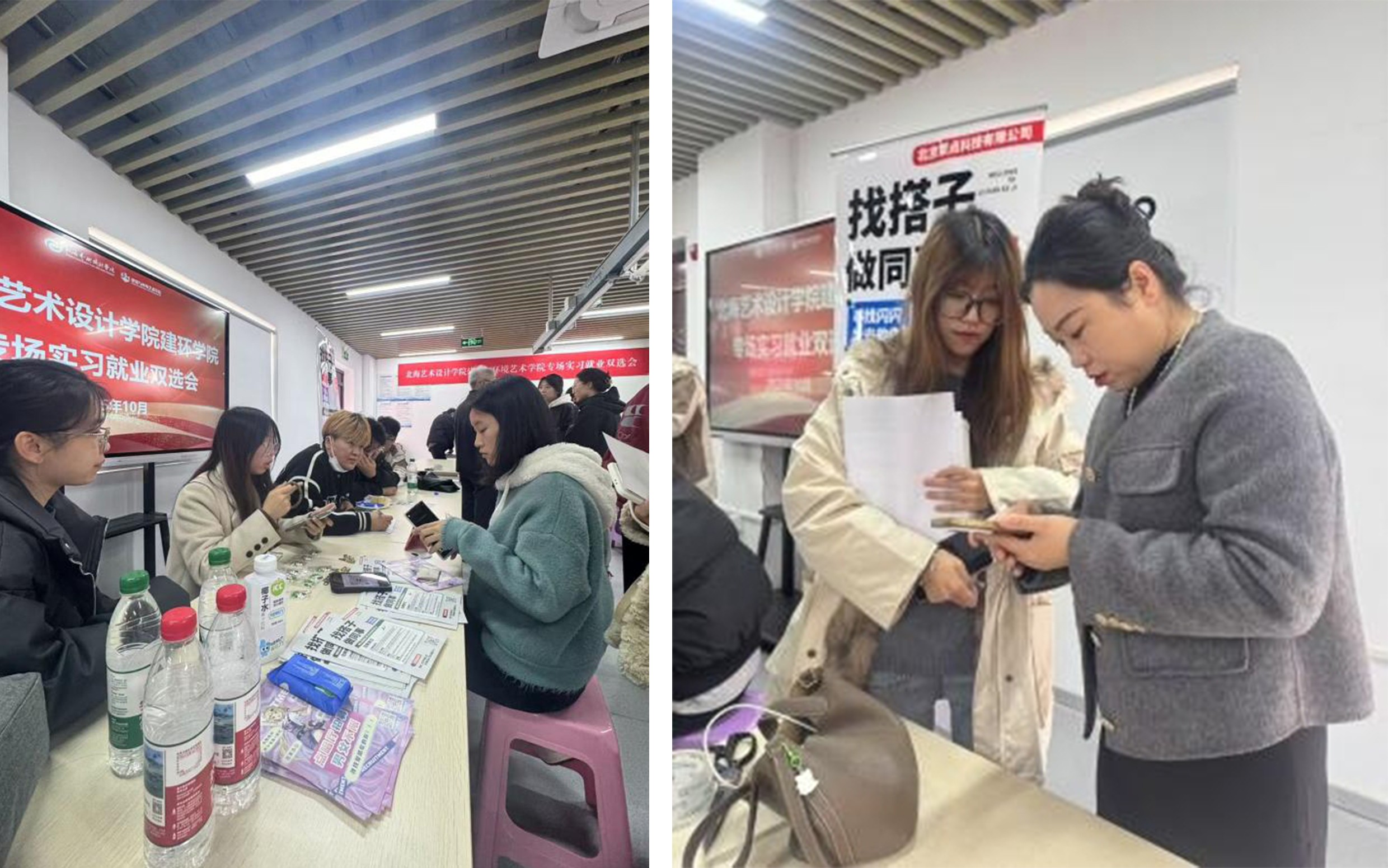2025年10月31日上午,由北海艺术设计学院建筑与环境艺术学院主办、北京实践基地(宏福)承办的专场实习就业双选会在北京实践基地(宏福)服装楼顺利召开。本次活动以“精准对接企业需求、搭建校企沟通桥梁”为核心,构建起“宣讲+双选”的就业服务场景,为环境设计专业学子打通实习就业“最后一公里”。