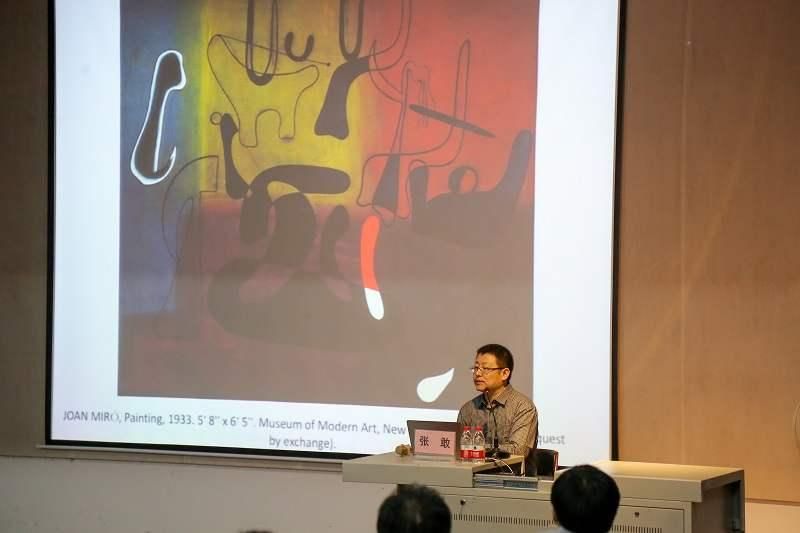 张敢教授通过介绍西方流派作家的作品中的色彩搭配、整体结构,以及作者对生活艺术的感受表达出来,向大家诠释了表现主义的美术思潮,为同学们提供了积累丰富的绘画底蕴;接着又讲述了立体艺术等抽象艺术形式主义的探索和超现实主义的幻想艺术,给人展现出不一样的表达方式。介绍过程中,张敢教授不时运用幽默的话语,引起同学们的一片欢笑声,使得本次讲座更为有趣。
