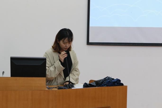大会第一项:动画学院分团委负责人黄江洁老师讲话。首先黄江洁老师对我院分团委的所有同学及老师表示感谢,并对大家提出相应的要求,包括礼貌、以身作则、认真负责的态度等希望大家把分团委当作是工作、学习、成长、共享、服务的平台同时鼓励大家同舟共济,积极贡献自己的一份力量。