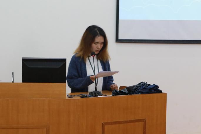 大会第二项:部负责人上台做工作汇报总结。动画学院分团委办公室主任杜明玥总结了分团委在本学期的工作,指出本学期工作的不足之处,并提出相应的措施。同时希望分团委的各位同学今后要加强学习提高素质团结协作搞好服务。
