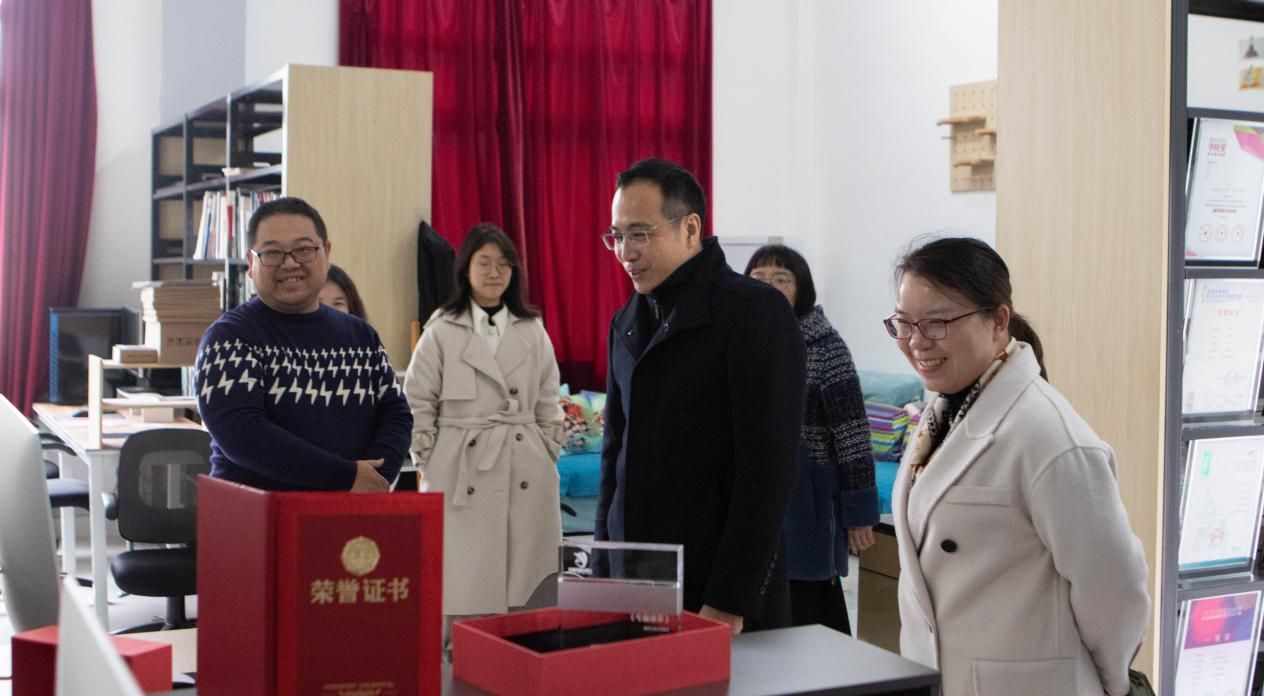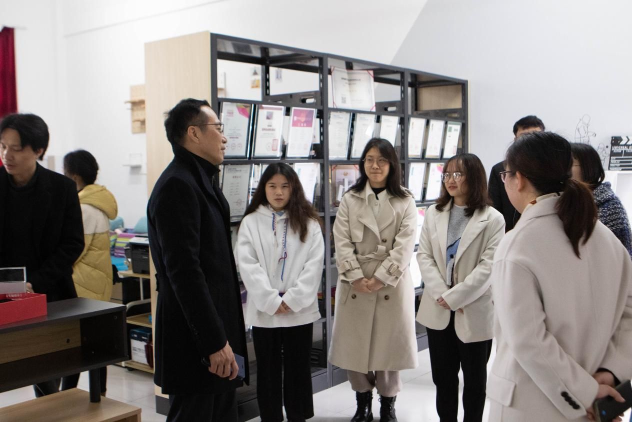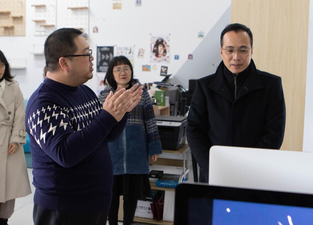 2021年12月29日,北海市党史办苏主任莅临北海艺术设计学院动画与传媒学院,视察《半条被子》创作团队情况,校党委副书记韦静月陪同前往制作现场。