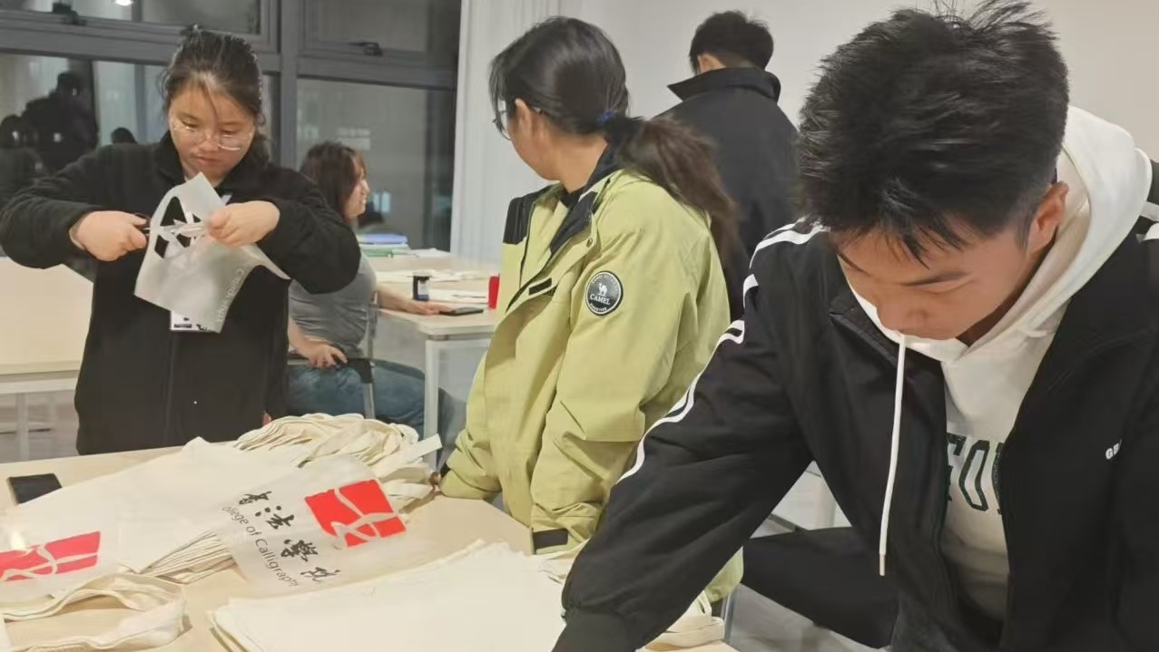 此次绘制帆布包不仅是一次艺术创作的实践,更是一次凝聚思想激发奋进力量的活动同学们在活动中锻炼了自己的动手能力和创造力信在未来的日子里,他们会继续用自己的方式展现书法学院的独特风采,为学院的发展贡献自己的力量。(罗恒、曾一峰 摄)