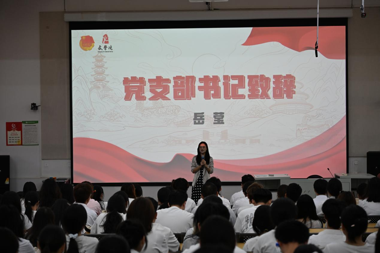 会议伊始,文学院党支部书记岳莹为大会致辞。岳书记首先对分团委成员在过去一年中的辛勤付出给予充分肯定。无论是迎新志愿活动中烈日下的执着坚守,还是团支部深入社区促进文化融合的不懈努力,抑或是积极参与学院各类展览与会议的忙碌身影,成员们的辛勤付出始终清晰可见。岳莹书记指出,要切实做好“老带新”工作,将宝贵的工作经验传授给新加入的干事,以助力他们更快、更好地融入分团委的工作环境。同时,希望成员们珍视分团委这一平台,把握宝贵机会,持续提升个人能力,展现文学院学子的青春奋斗