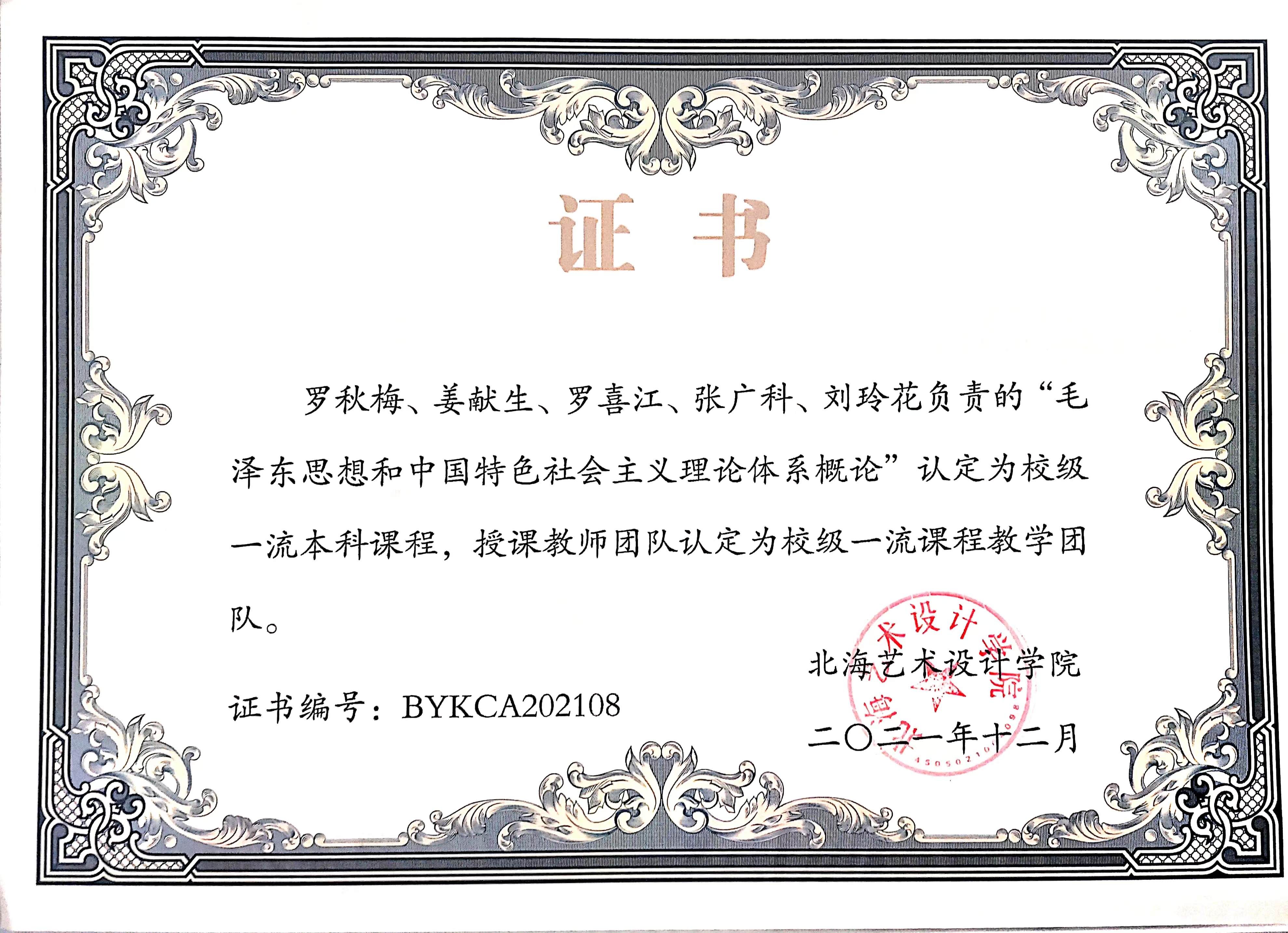 “毛泽东思想和中国特色社会主义理论体系概论”认定为校级一流本科课程